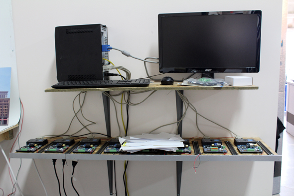 | Here we see the early test shots of the cylindrical hopper and the stack