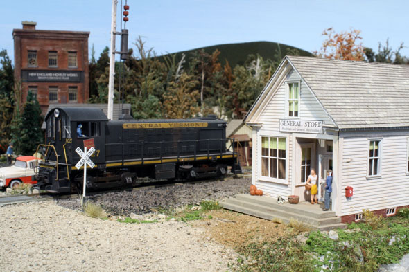 | The CV local switcher works the Crossing at the newly installed general store. |