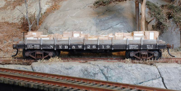 | My model was built from the F&C resin kits for the NEB&W and given a load of cut marble pieces in crates based on a few sketchy prototype photos...Bill Gill |